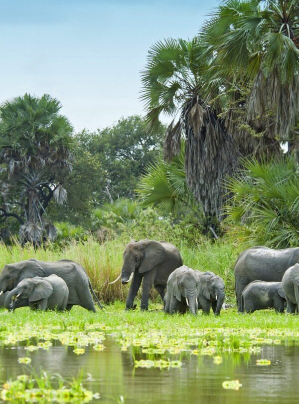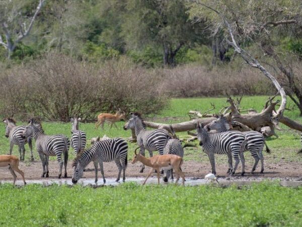 Nyerere National Park stretches across the Rufiji River basin and includes extensive floodplains, miombo woodlands, riverine forests, and lakes. Its diverse ecosystems support a wide range of species and make it one of Tanzania’s richest wildlife areas. The Rufiji River, Tanzania’s largest, runs through the park, providing vital water sources for animals and supporting vibrant aquatic life.